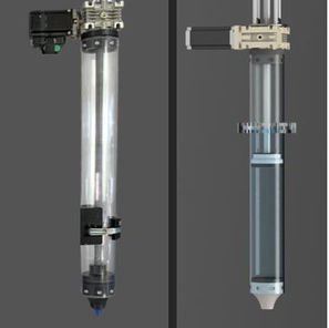 In order to facilitate the easy retraction of the ram without the need for disassembling the motor, it was necessary to divide the cartridge assembly into two distinct sections. Section A is permanently attached to both the gantry and extrusion motor, while section B allows for easy loading of material. While this configuration does have a limited material capacity, it meets the necessary requirements for our intended use of the printer. A render of the modifications is provided below for further clarity.